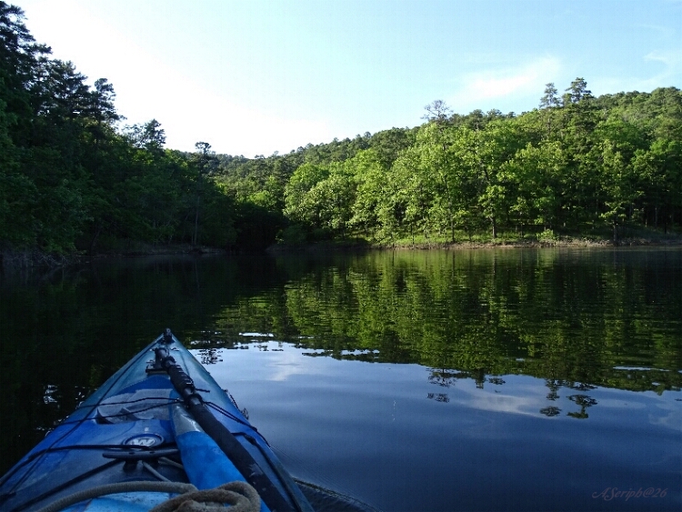 He loaded up his kayak with the remaining stones and driftwood. He sat the crystal beside his seat in the kayak, safe and warm. He paused and looked around the cove, checking the trees and feeling everything. It was all quiet. The Eagle was likely off in one of the other beautiful coves enjoying the evening. As the sun got low he slid the kayak in the water and gently got in. The boat was lighter than the night before. There was no breeze so tonight he would be paddling home across the lake. The crystal sat beside him as he watched the sun setting on the far off ridges. The sunlight danced on the tops of the waves and some pink caught the few low clouds.