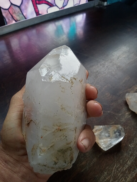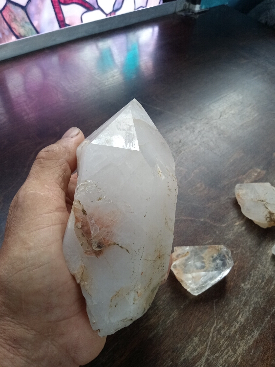 He turned towards the pile of stones and took a step or two. That's when he saw it. As he looked ahead something bright caught the sunlight shining on a log. It was right under the limb where the Eagle watched him. He went over to see what it was that caught his eye. There perfectly laid on top of the log was a large quartz crystal. What? It was one of the largest he had ever found. It was just sitting there perfectly placed. He looked up and the Eagle's limb was there right above it. He picked it up and held the crystal. The energy was warm and wonderful. What an amazing find. How did this get here? He looked again at the log, then up at the empty eagle perch right above him. He looked around the cove and took it all in. There was no mistaking. He knew how it got here.